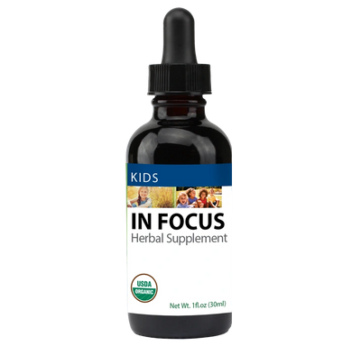 In Focus uses organic herbs to help create calm focus and balanced energy for your child. This product is designed to help with schoolwork, sports and general health and may even help with positive attitude and behavior. You will give this product an A+!